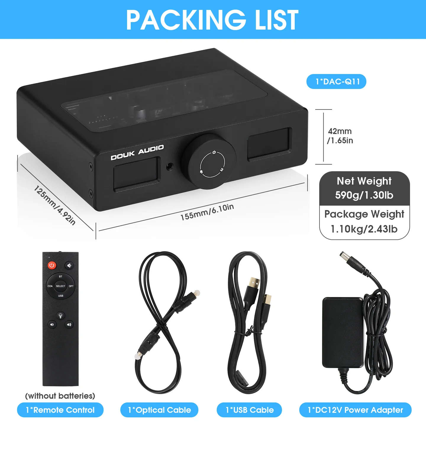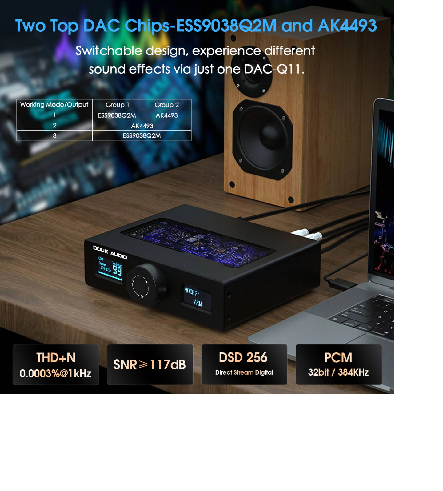 - High-performance: Offering an exceptional SNR (≥117dB) and ultra-low THD of 0.0003%, ensuring the high-quality conversion of audio signals. PC-USB input supports 32Bit/384kHz transmission and DSD256 playback, suitable for users who pursue ultimate sound quality.