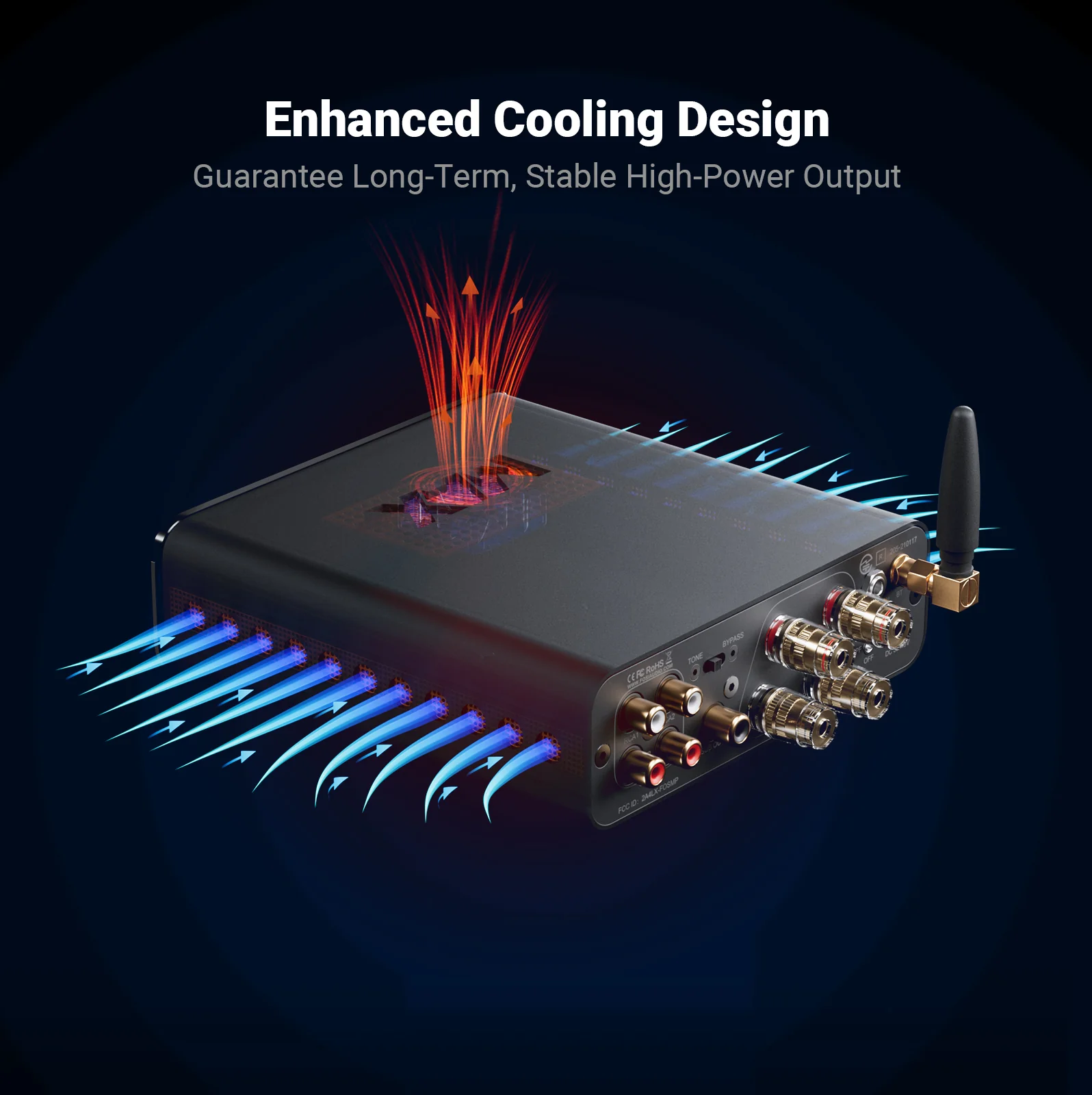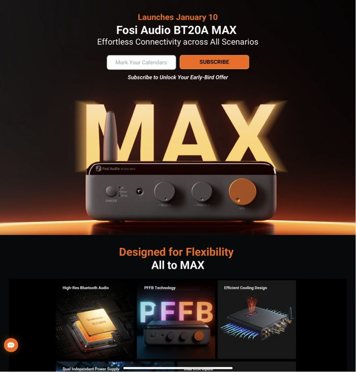 Enhanced Cooling System: Powered by the TPA3255 & NE5532 chips, the BT20A MAX delivers 300W per channel. Its enhanced design includes a built-in silent fan, improving cooling efficiency by 30% over the PRO version for stable, high-power performance.