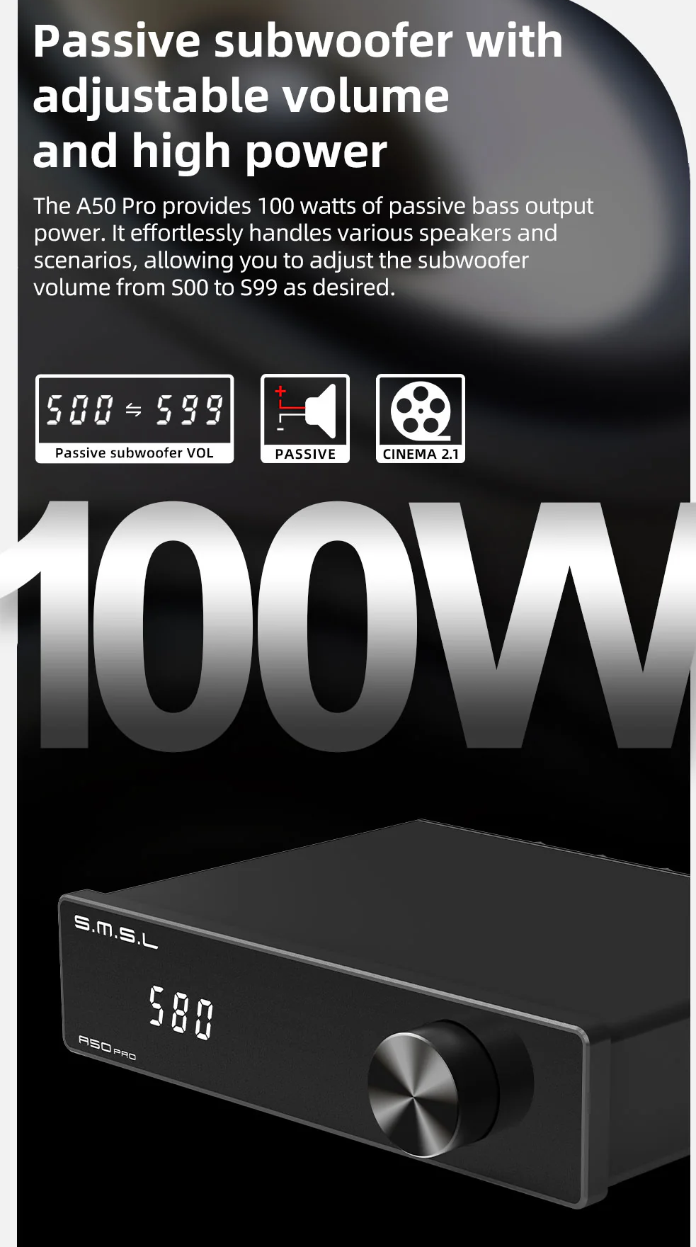 High-pass, low-pass each 10 crossover points adjustable, subwoofer output volume adjusted independently, perfectly adapted to different passive main channel speakers and passive subwoofer speakers, composed of 2.1 speaker system.