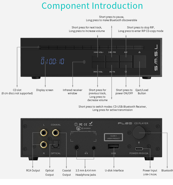 With optical and coaxial digital output, it can be connected to external DAC or digitalpower amplifier;