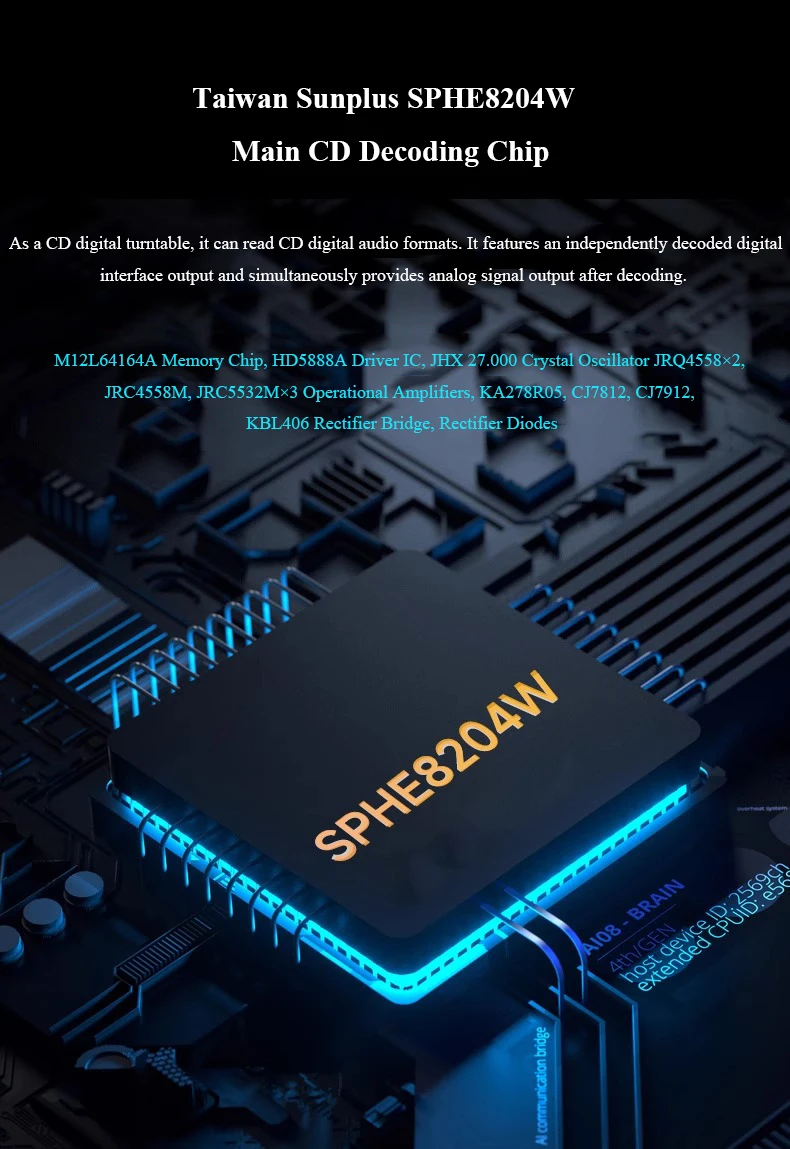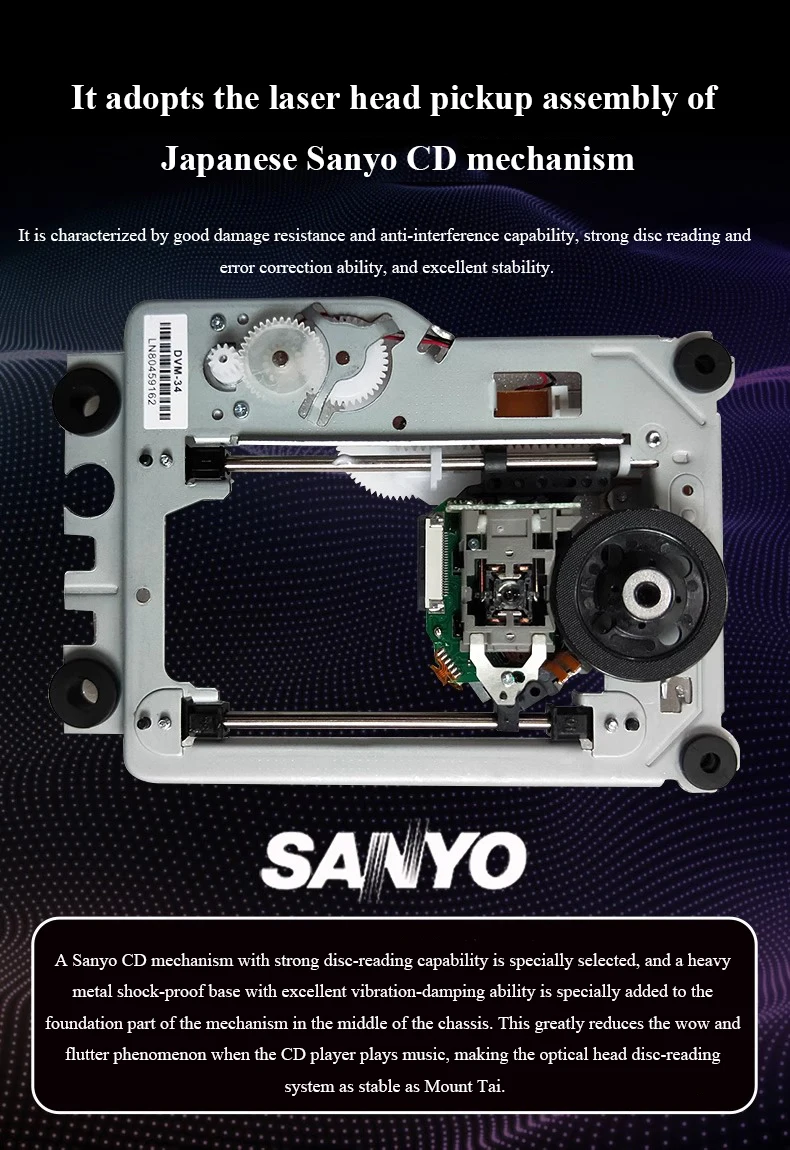* Adopt Japanese Sanyo CD Movement Laser Head Pickup Assembly.