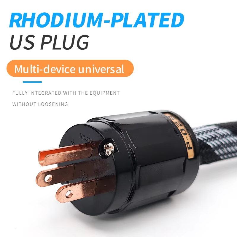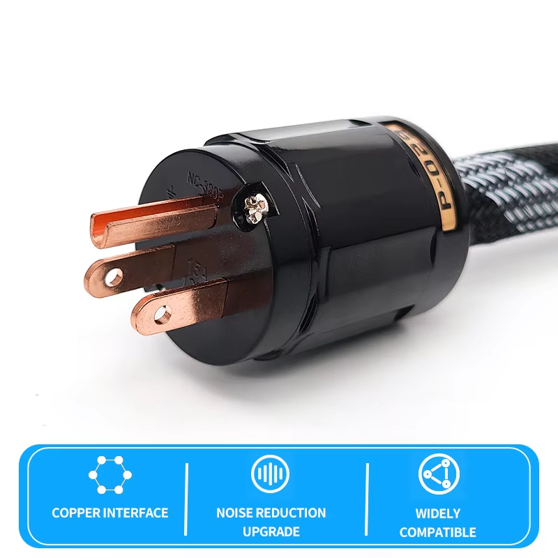 8N Gold Plated Eur Hifi Power Socket Cable with PTFE Insulation and Alpha-OCC Conductor