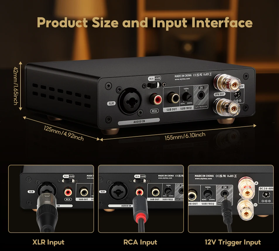 3. Versatile Connectivity: Features multiple audio inputs including RCA, XLR, and a 12V trigger, allowing for easy integration with various audio equipment and streamlining device synchronization.