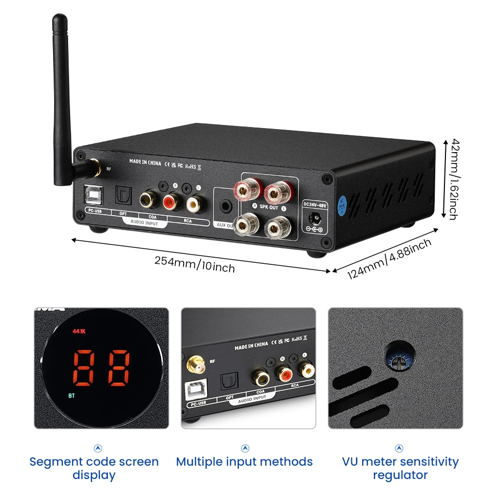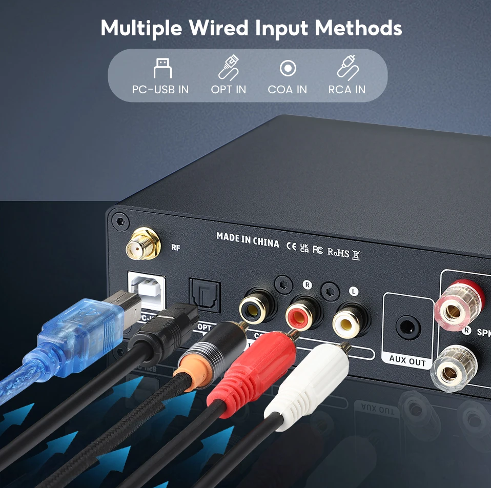 Audio input : Bluetooth/PC-USB/OPT/COA/RCA
