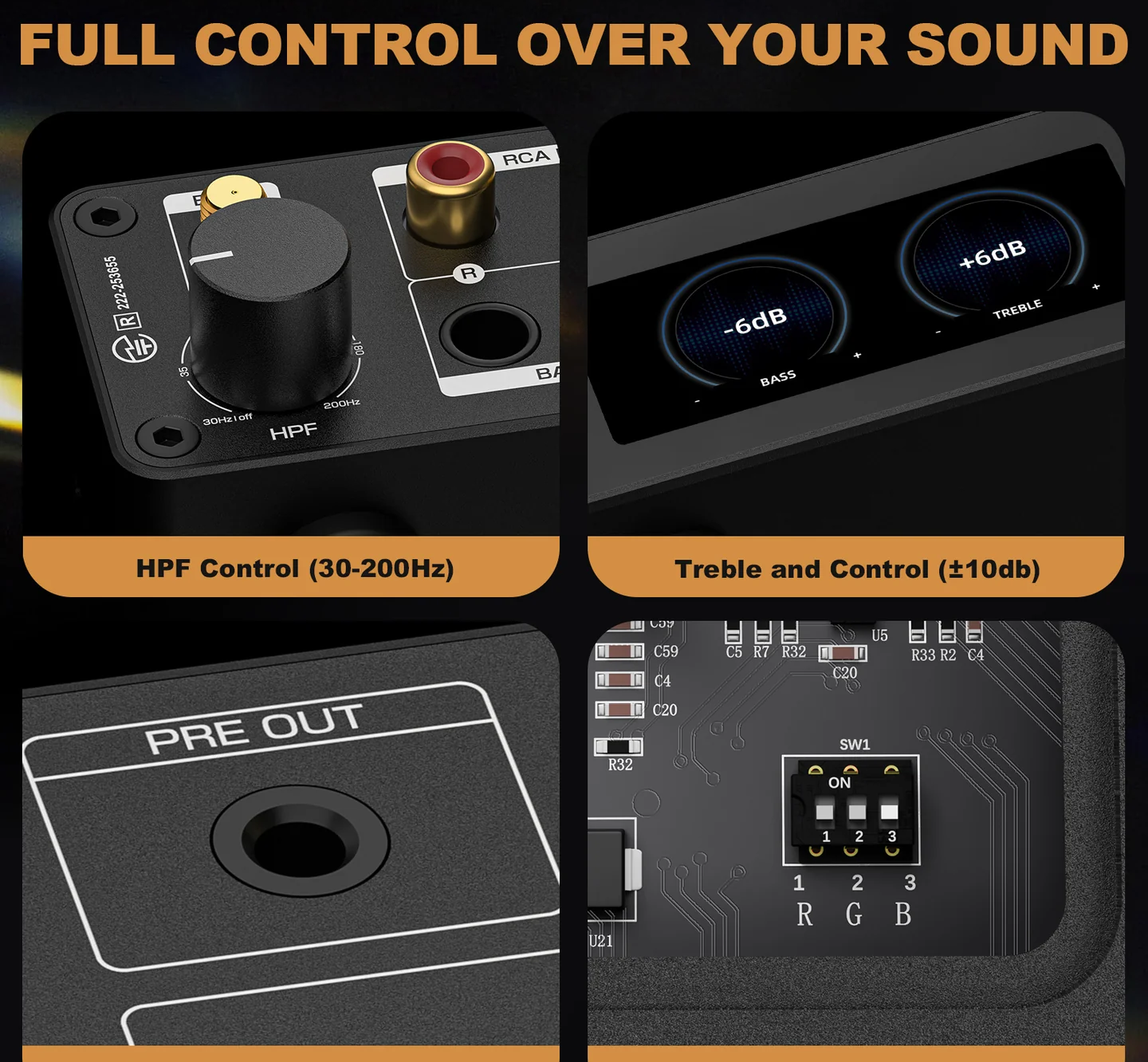 - Engineered for True 2.1 Systems: The adjustable 30–200Hz high-pass filter removes low frequencies from the main output, letting your stereo speakers focus on mids and highs with better clarity, while PRE-OUT offers full-range signal to active subwoofers, amplifiers, or active speakers.
